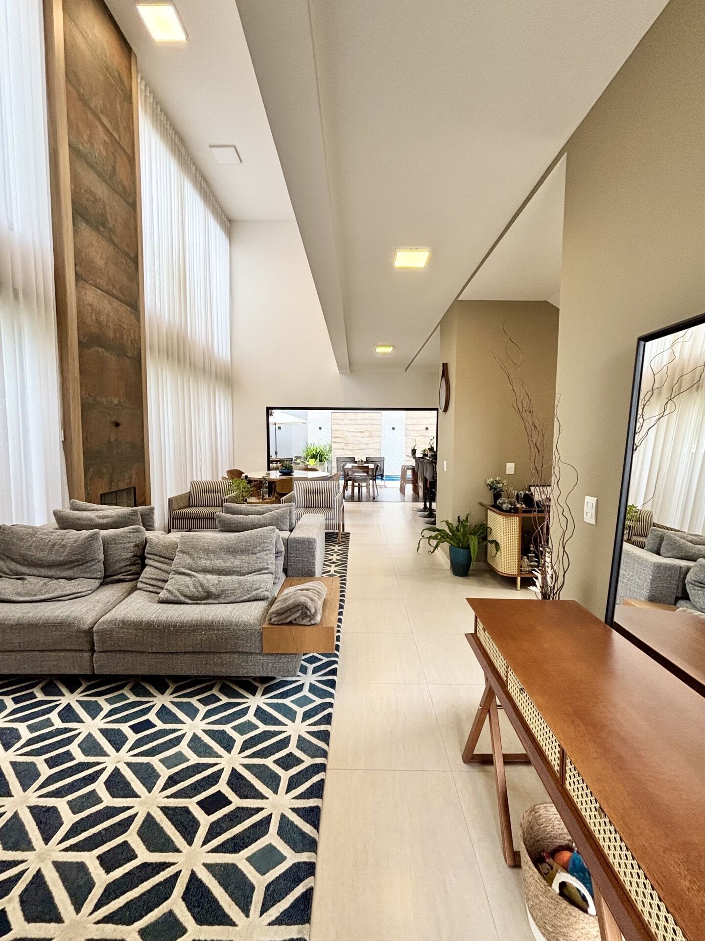 - Espaço em conceito aberto integrando Sala de TV, Sala de Estar com Lareira, Sala de Jantar e Cozinha;